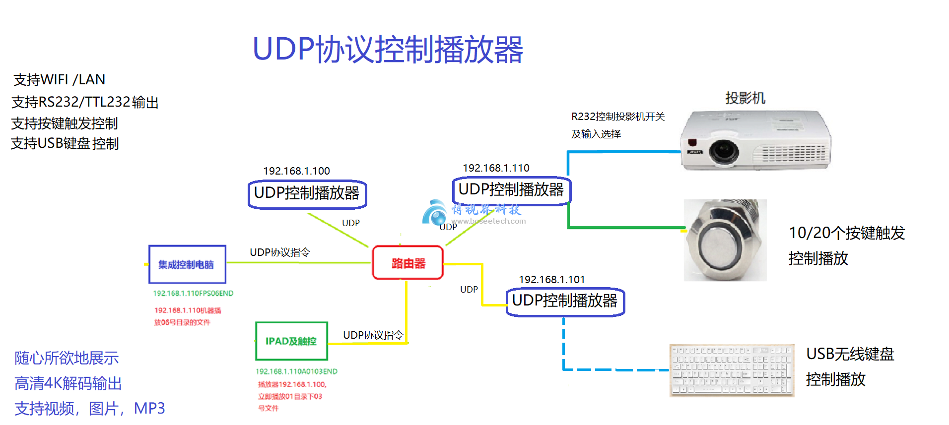 一、本中控視頻播放器,支持串口和網(wǎng)絡(luò)同時(shí)控制,協(xié)議對外,可用中控系統(tǒng)控制。